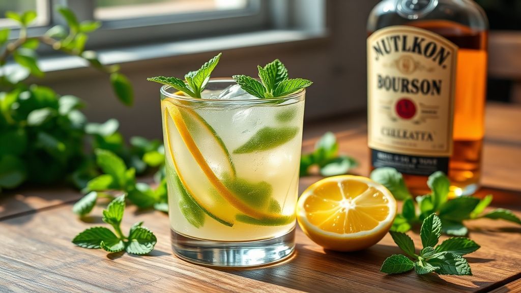Освежителниот коктел мент џулеп со лимонова кора е совршен за љубителите на бурбон коктели. Овој пијалак комбинира свежа мента и дробен мраз со бурбон, создавајќи пијалак кој зрачи со пролетна свежина. Во оваа верзија, формулата е изменета со опционална лента од лимонова кора, која кога се меша со ментата, додава светла рамнотежа на често сладок коктел.