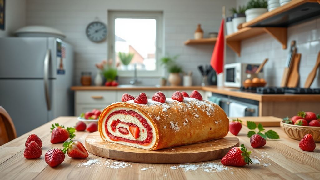 Совршениот ролат со јагоди е идеален десерт за пролетни забави, кој ќе ги воодушеви вашите гости со својата свежина и вкус.